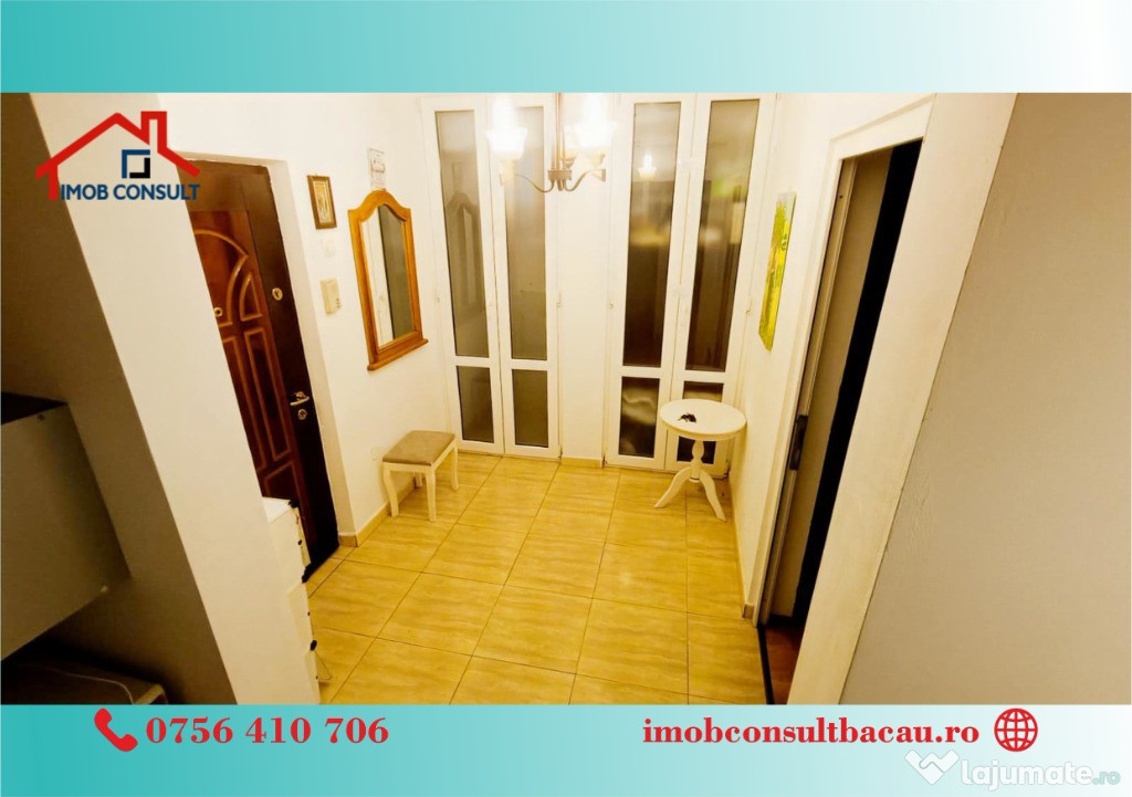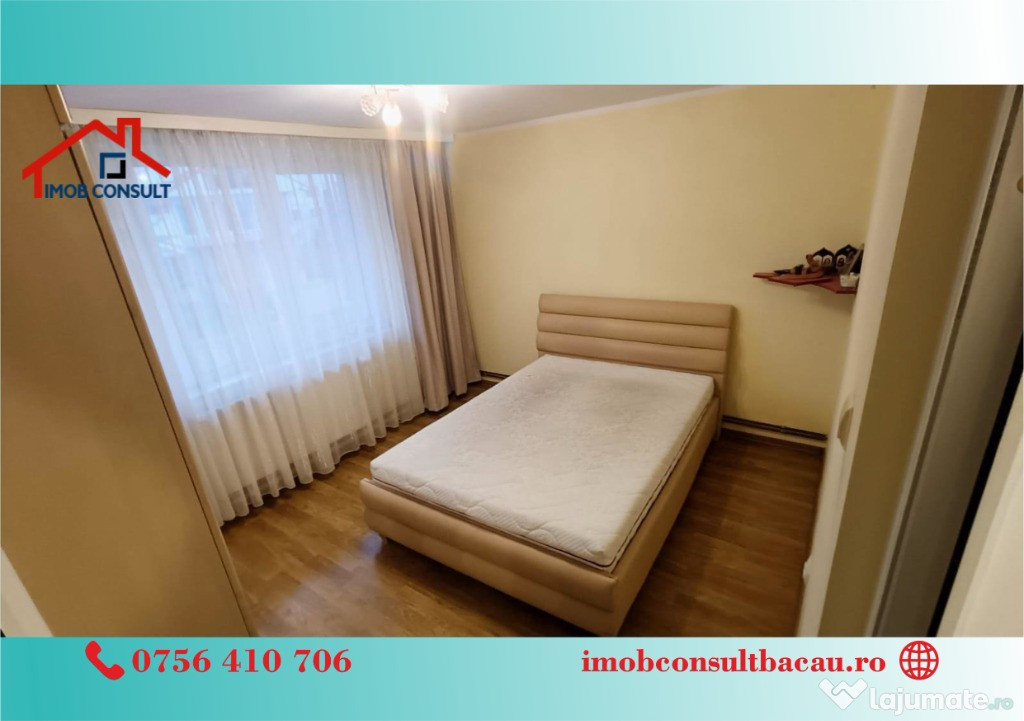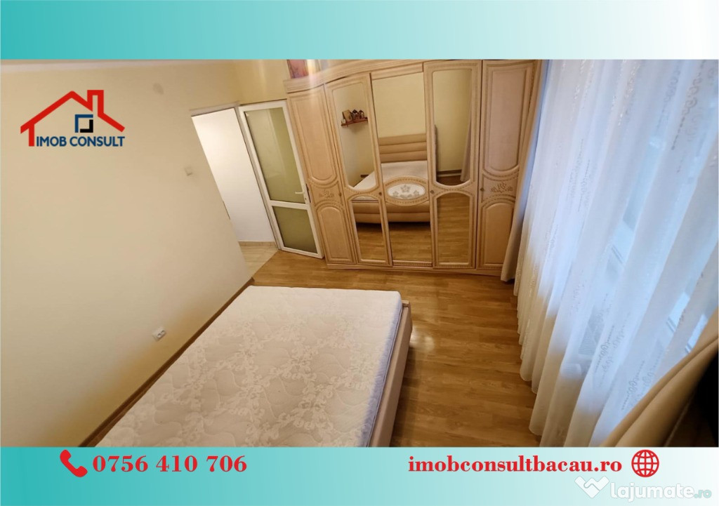 Echipa Imob Consult iti prezinta spre închiriere un apartament decomandat, situat la etajul 2 al unui bloc cu 10 etaje, dotat cu lift. Apartamentul dispune de un balcon spațios, geam la baie pentru aerisire naturală și un hol generos cu spații de depozitare.Locuința este complet mobilată și utilată, având centrală termică proprie și toate electrocasnicele necesare pentru confortul zilnic.