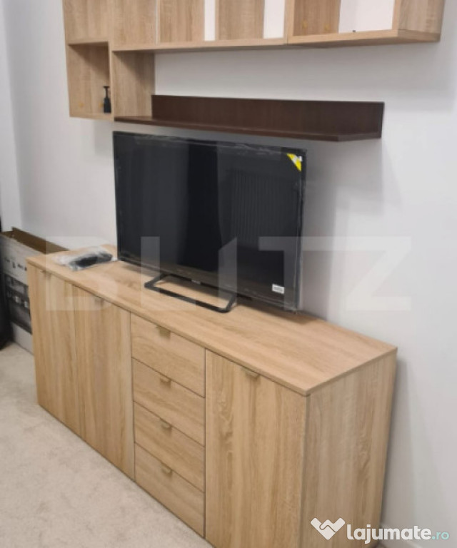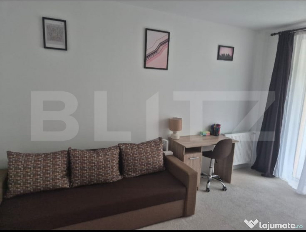 Blitz ofera spre inchiriere un apartament care te întâmpină cu o atmosferă luminoasă și echilibrată, perfectă pentru cei care caută confort și stil într-un spațiu bine organizat. Bucătăria open-space este complet utilată și amenajată cu bun gust, îmbinând nuanțele calde de lemn cu accente moderne. Blatul de bar adaugă o notă de eleganță și funcționalitate, transformând colțul de zi într-un loc plăcut pentru cafeaua de dimineață sau o cină relaxată. Dormitorul este gândit pentru relaxare, fiind un spațiu curat, aerisit, cu un design minimalist, unde mobilierul creează o ambianță ideală atât pentru odihnă, cât și pentru lucru de acasă. Ferestrele mari lasă lumina naturală să inunde întreaga încăpere, accentuând senzația de spațiu și liniște. Apartamentul se remarcă prin armonia detaliilor și printr-o amenajare practică, dar elegantă. Te invit la o vizionare!Disponibil imediat!