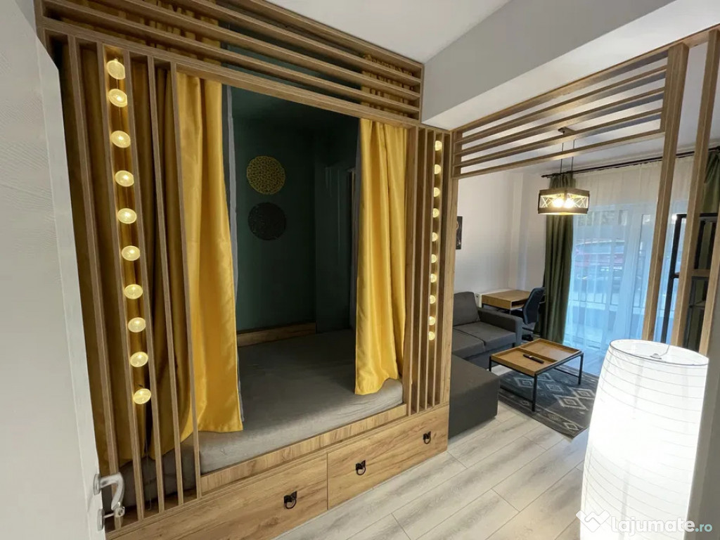 Destine imobiliare va propune pentru inchiriere apartament cu o camera, decomandat, situat la parterul unui bloc nou din Valea Lupului, in apropiere de supermarketuri, farmacie, cofetarie, cafenea, restaurante, sala de sport, mijloace de transport in comun.Apartamentul este complet mobilat si utilat: