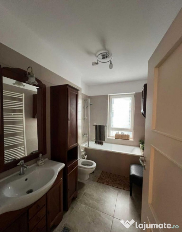 De vanzare apartament decomandat, de 3 camere, cu 2 bai, mobilat + utilat, cu parcare exterioara si boxa la demisol, construit in 2019.Balconul inchis cu sticla integral, cu sistem de deschidere totala.
