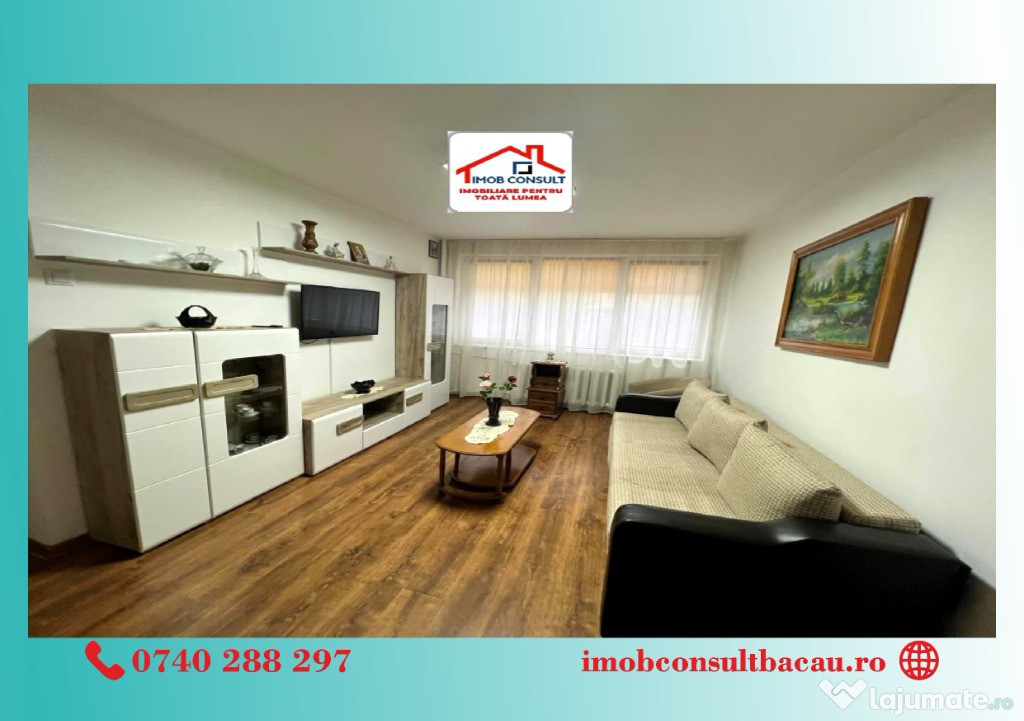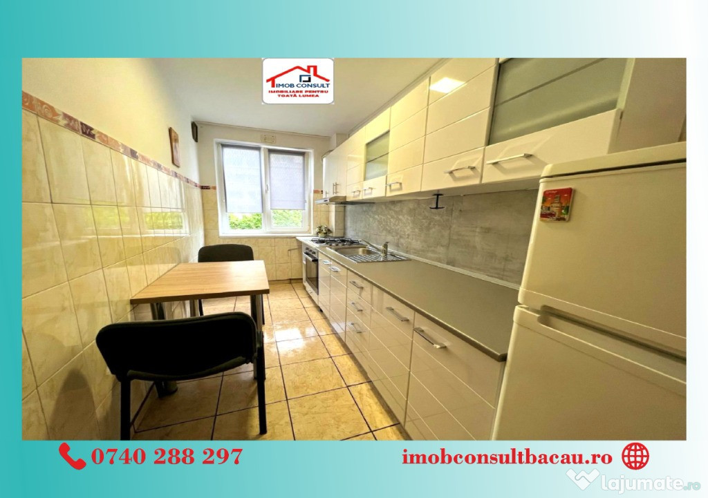 Echipa Imob Consult Bacău vă prezintă spre închiriere un apartament modern cu două camere, situat la etajul 2 al unui imobil cu 10 etaje, în zona Gării, una dintre cele mai accesibile și bine conectate zone din oraș.Acest apartament este complet mobilat și echipat, gata să devină acasă. Camerele sunt luminoase și spațioase, iar balconul oferă un plus de confort și relaxare. Locuința beneficiază de lift, ceea ce face accesul extrem de comod.