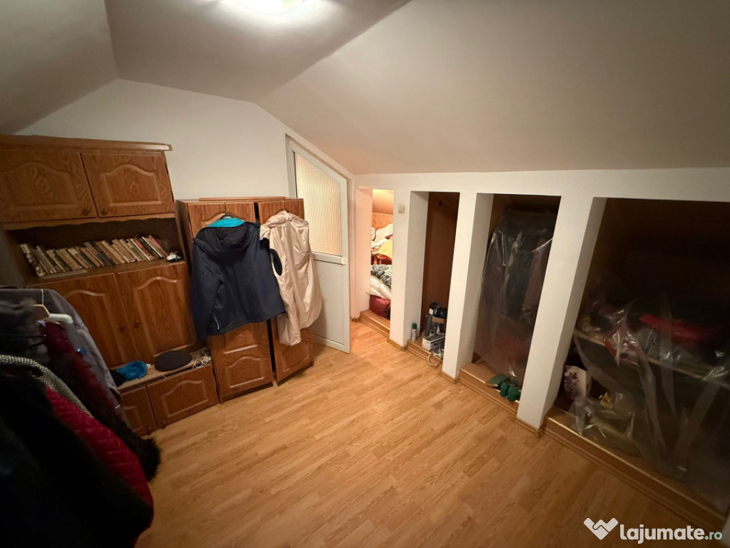 Mansardă: dormitor deschis (pat amenajat), baie, dressing generos (poate fi transformat într-o cameră suplimentară).