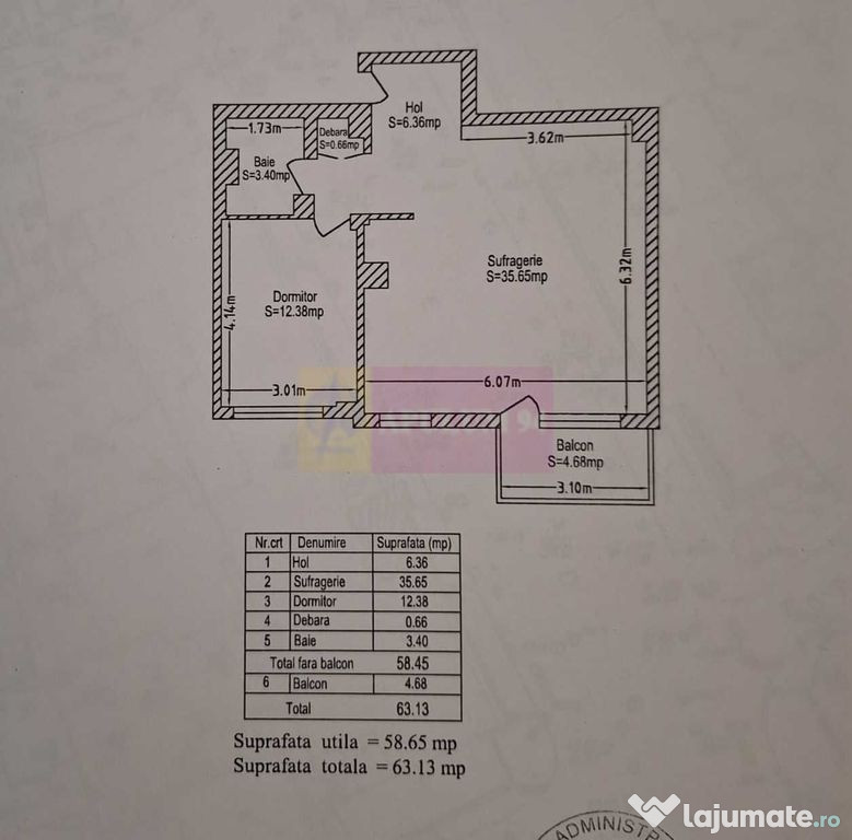 Suprafață utilă: 58 mp (63 mp cu balcon)