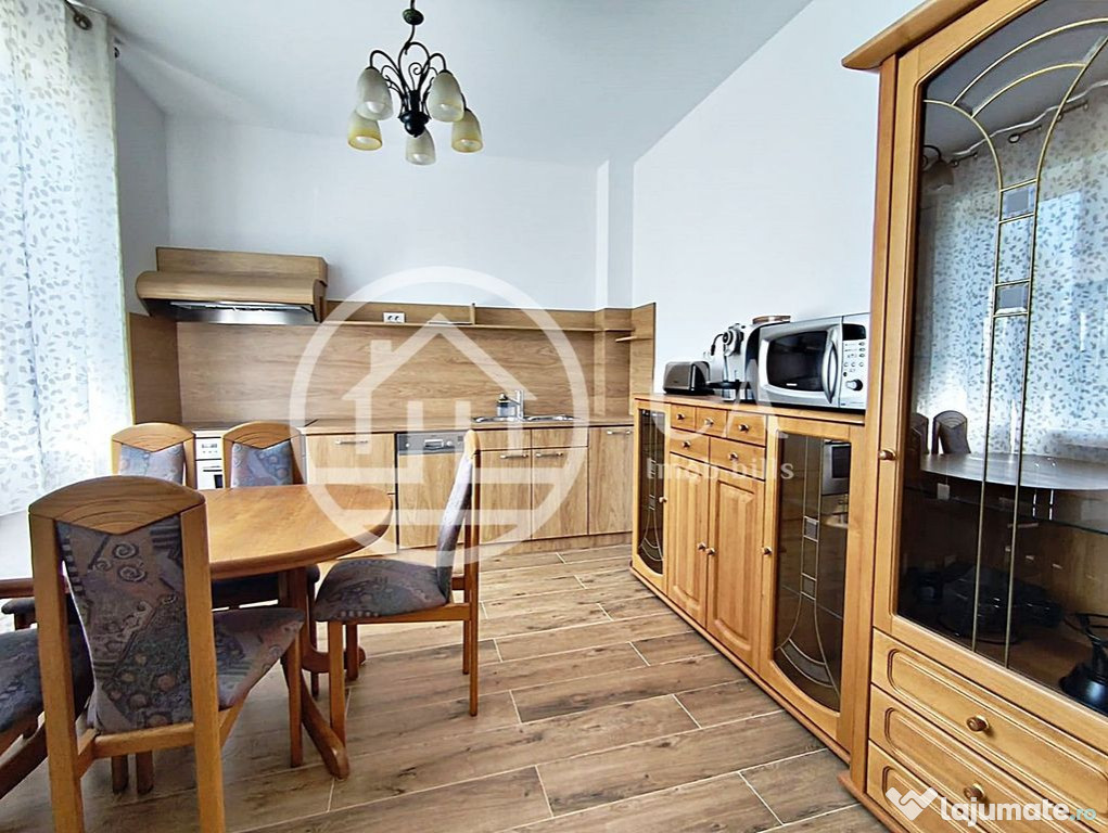 Imobilul se inchiriaza complet mobilat si utilat cu: masina de spalat haine, masina de spalat vase, combina frigorifica, plita electrica, cuptor cu microunde, cuptor electric, hota si 2 TV.