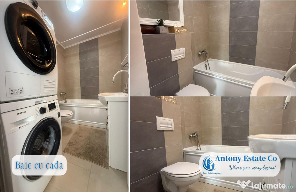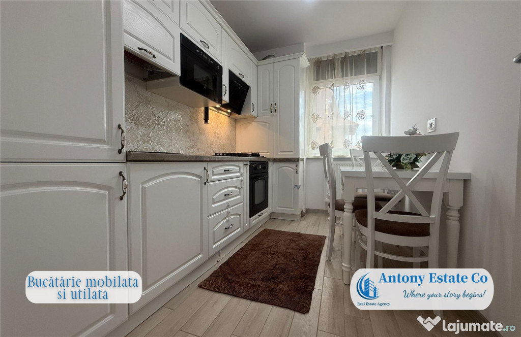 Proprietarul pune la dispozitie viitorului nou chirias urmatoarele utilitati: cuptor si plita, microunde, hota, frigider, masina de spalat rufe, TV si intregul mobilier ce se vede in poze.