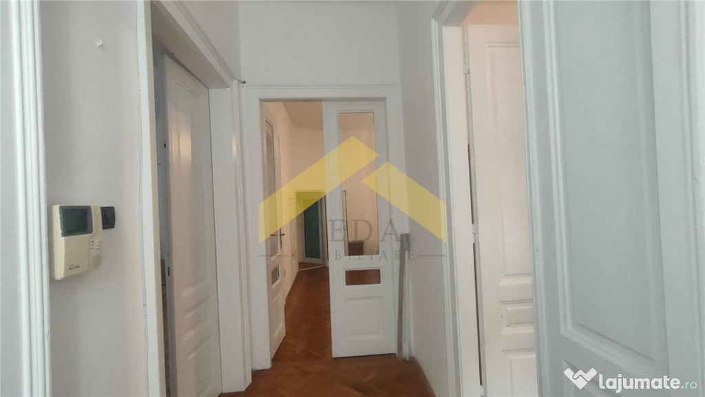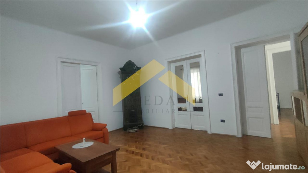 FEDA Imobiliare va ofera spre inchiriere un apartament cu 4 camere in centrul Aradului, zona Podgoria , strada Dimitrie Bolintineanu. Imobilul se afla la parter cu o suprafata de 310 mp si o structura circulara. Acesta este compus din 4 camere, o bucatarie, doua bai, hol, camara si o terasa. De mentionat ca la demisol se mai afla inca o camera, o bucatarie si o baie. Dotari: -centrala proprie pe gaz-sobe din teracota-geamuri termopan-clime -cabina de dus -loc de parcareUtilitati: -Gaz-Apa-Curent-CanalizareImobilul este pretabil pentru birouri, cabinet medical, rezidential, etc.Pentru mai multe detalii sau programarea unei vizionari, nu ezitati sa ma contactati telefonic!!Felix Petru-ascunsConfort: 1