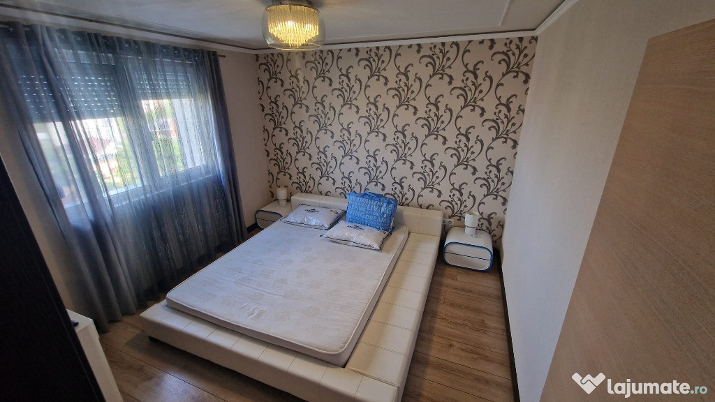 Se inchiriaza apartament 4 camere , conf Lux, sup 100 mp , amenajat si mobilat ultima generatie, centrala termica incalzire inpardoseala, parchet lemn stratificat, faianta, gresie, aer conditionat, living modern cu acces in balcon, canapea extensibila , 2 dormitoare moderne un dormitor amenajat dresing, baie mare cu cada si baie de serviciu. Bloc reabilitat termic, izolat exterior, lift modern , loc parcare.Confort: Lux