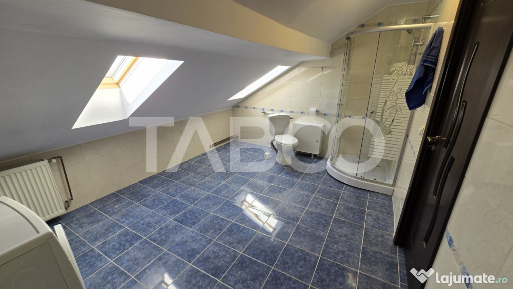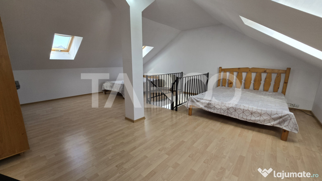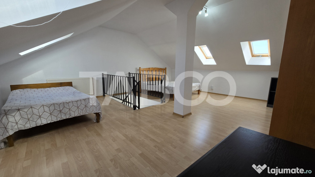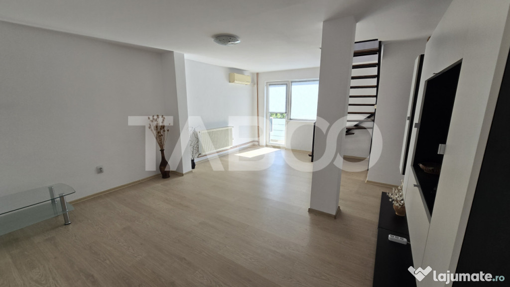 TABOO Imobiliare propune un apartament de vanzare cu 3 camere, decomandat, situat in localitatea Sibiu, zona Tilisca, aflat la mansarda unui imobil tip bloc cu regim de inaltime pe Parter + 4 Etaje + Mansarda; anul constructiei 2011, structura caramida. Suprafata utila de 115 mp + balcon de 15 mp.