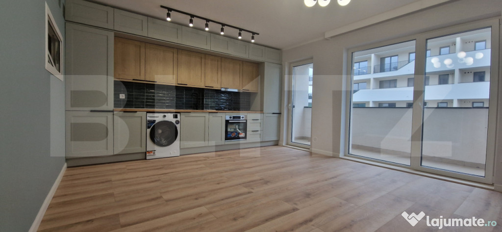 * **Bucătărie complet mobilată și utilată LUX**, cu mobilier de calitate superioară, dotat cu amortizare, iluminare LED cu soft touch și electrocasnice moderne (inclusiv mașină de spălat vase)