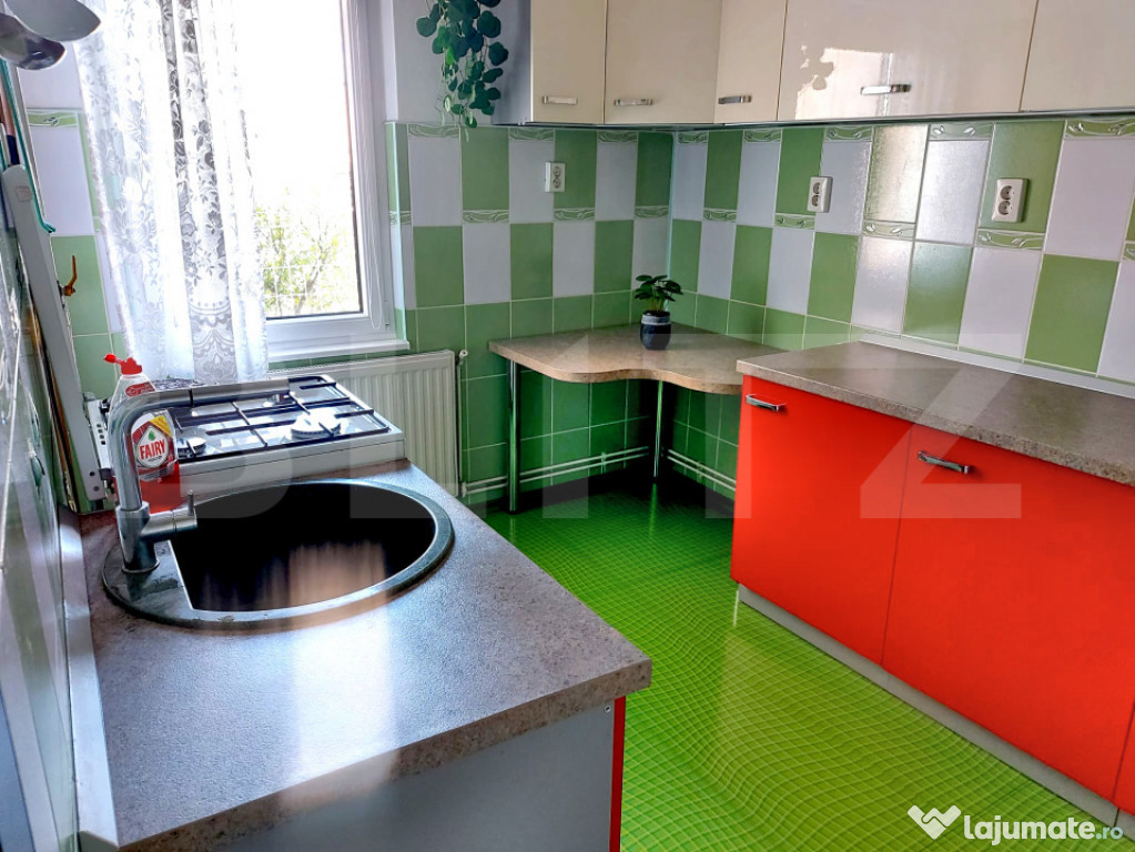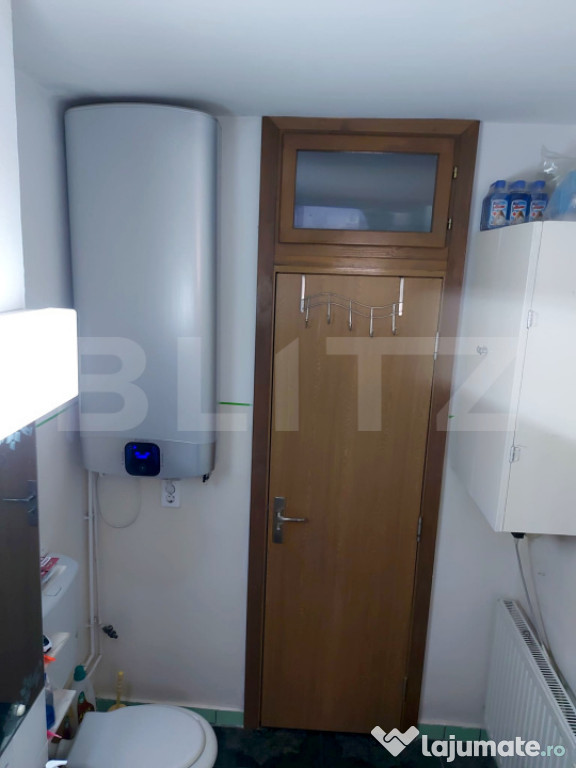 Apartamentul este compartimentat în 2 camere spațioase, cu balcon închis, baie cu geam pentru aerisire naturală și o bucătărie generoasă. Dispune de geamuri termopan, centrală proprie, precum și de un boiler Ariston de 100 l – perfecte pentru confort termic în orice anotimp. Instalația electrică a fost refăcută în totalitate, oferind siguranță și eficiență.