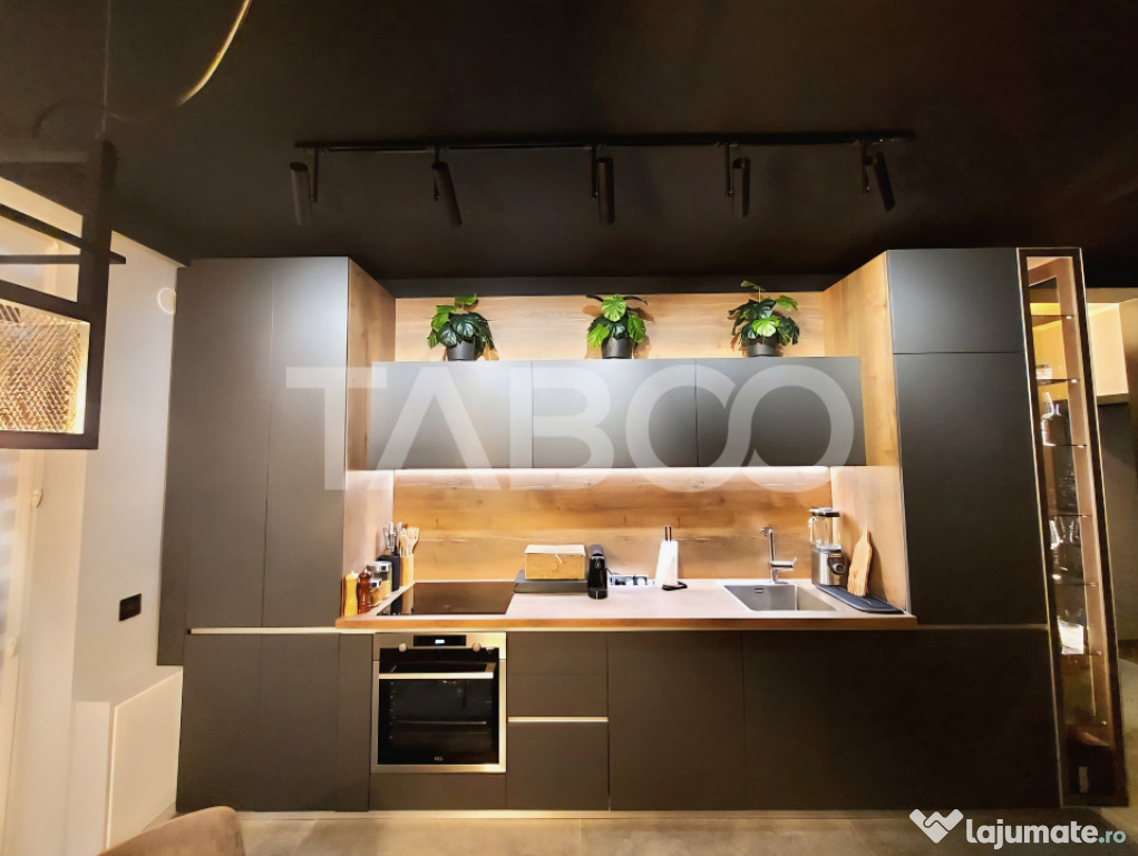 Apartamentul se vinde mobilat si utilat cu: plita electrica, cuptor, hota, masina de spalat vase, frigider cu congelator.