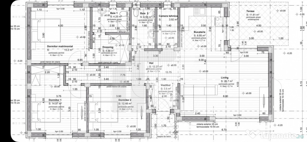 Celelelate doua dormitoare sunt pozitionate catre fatada principala si au acces la a doua baie localizata pe holul generos de 8mp.