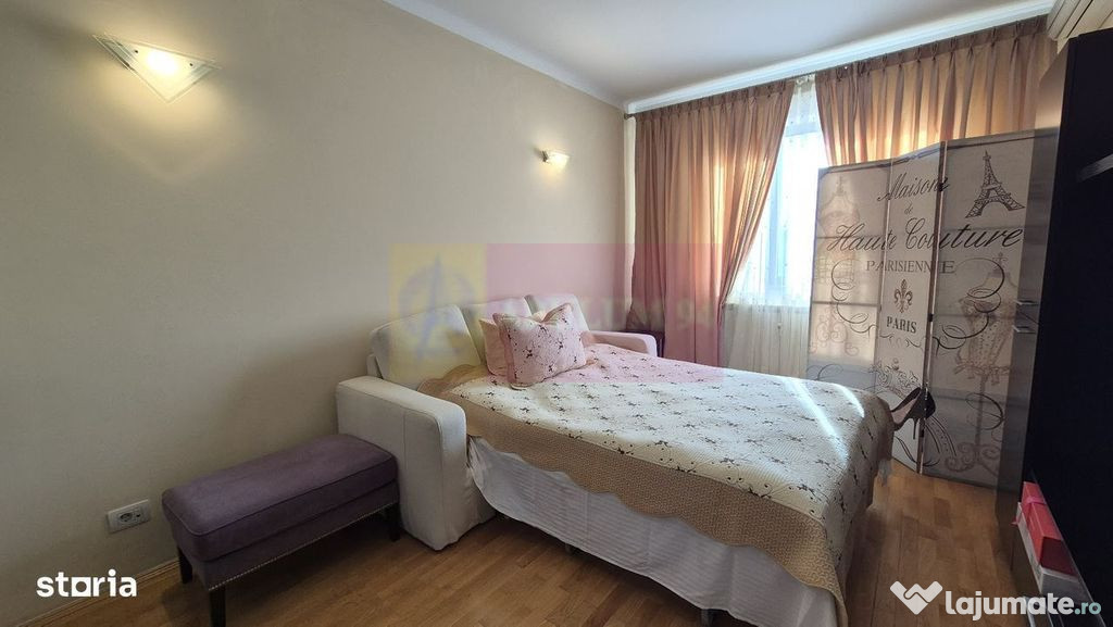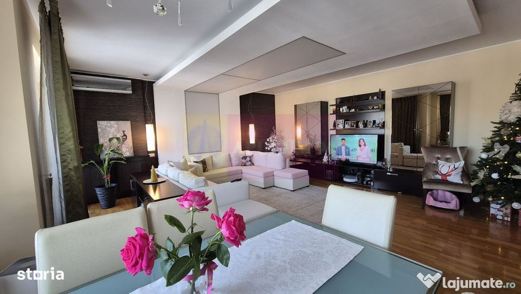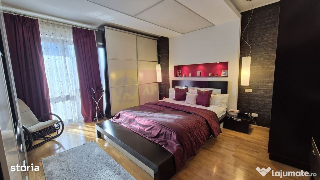 Agentia Apulum 94, va propune spre vanzare un imobil tip boutique, cu regim de înălțime P+4+M, construit în anul 2006 și având doar două apartamente pe nivel, acest apartament elegant se află într-una dintre cele mai dorite zone ale Capitalei, în imediata apropiere a Lacului și Parcului Floreasca.Proprietatea este amplasată la etajul 4 și beneficiază de o suprafață generoasă de 154 mp, o compartimentare excelentă și lumină naturală. Zona de zi este reprezentată de un living spațios de 45 mp, cu zonă de dining și acces direct către terasă. Bucătăria este închisă, complet mobilată și utilată.Zona de noapte cuprinde un dormitor matrimonial de 22 mp, cu baie proprie și balcon, precum și două dormitoare secundare, fiecare cu suprafața de aproximativ 17 mp, deservite de o baie separată. Spațiile sunt completate de două holuri ample.Unul dintre principalele atuuri ale proprietății este priveliștea spectaculoasă asupra Lacului Floreasca, dar și poziționarea excelentă, în proximitatea Parcului Floreasca, Parcului Verdi, Pieței Floreasca, Pieței Dorobanți, Promenada Mall și a zonei de birouri Aviației–Pipera. În apropiere se regăsesc restaurante, cafenele, magazine, școli și grădinițe de prestigiu.Încălzirea este asigurată prin centrală termică de bloc, oferind eficiență și confort termic pe tot parcursul anului.Apartamentul se vinde complet mobilat și utilat, fiind inclus un loc de parcare în garajul subteran, precum și o boxă pentru depozitare.Confort: Lux