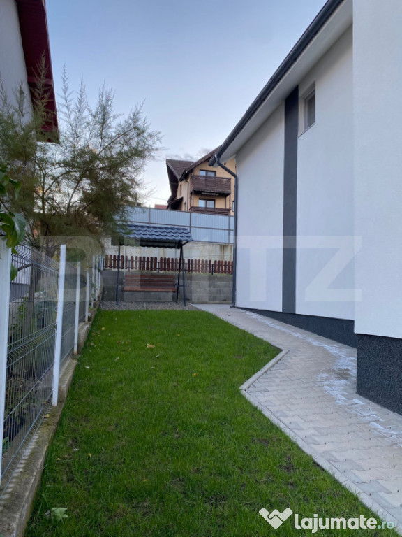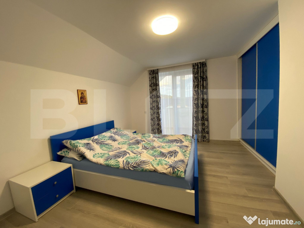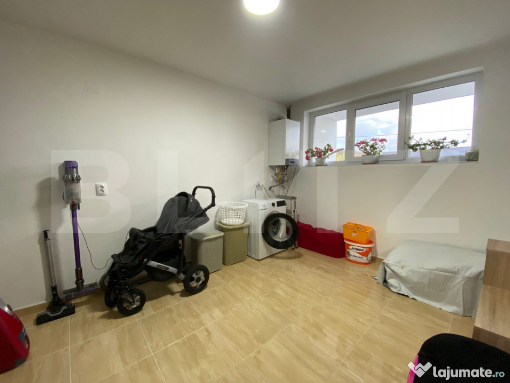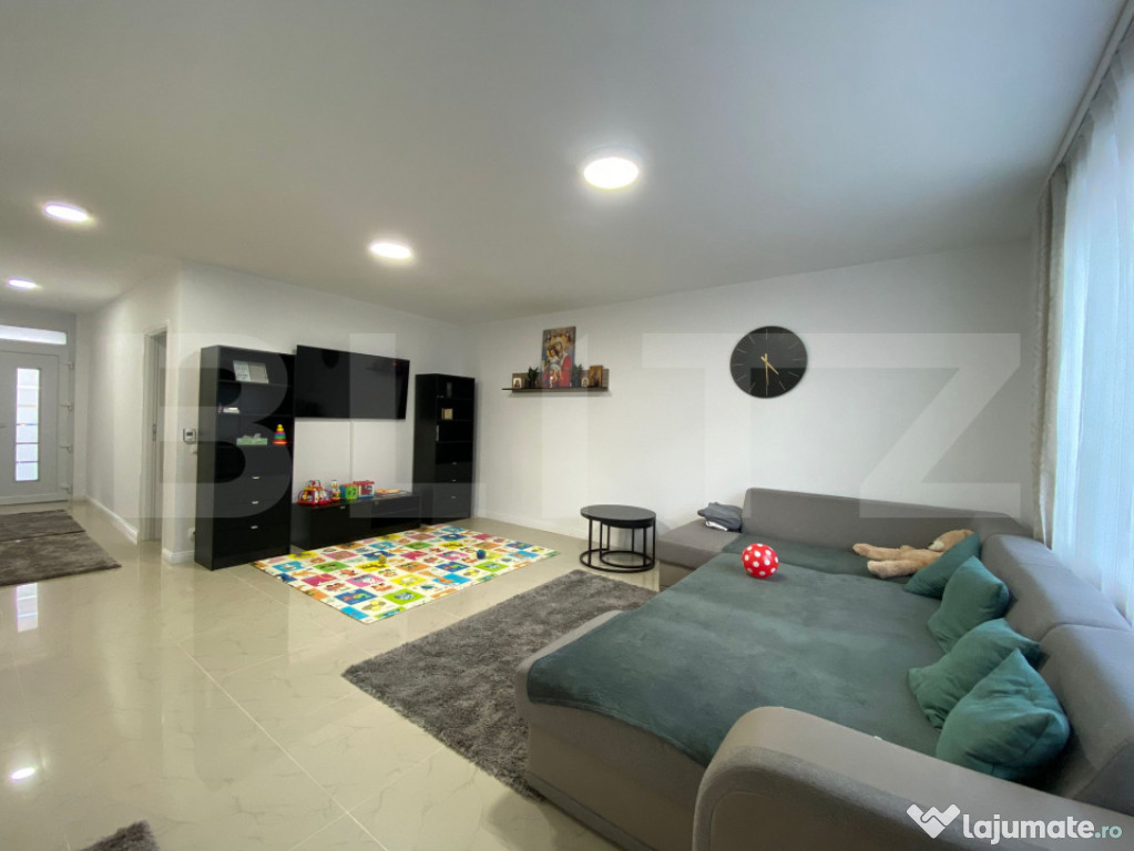 Blitz va propune spre vanzare o casa moderna, construita in 2023, situata in Apahida (zona Borom), pe un teren generos de 500 mp. Proprietatea se remarca prin finisaje de calitate, compartimentare functionala si toate utilitatile.Detalii proprietate: