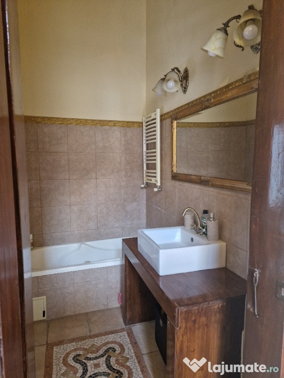 baie mare cu cadă, mobilier masiv și atmosferă spa