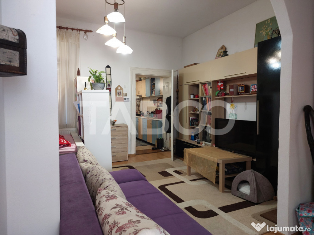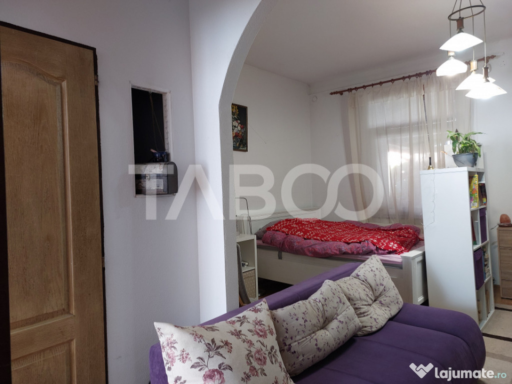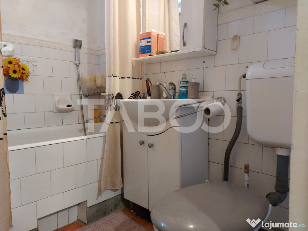 TABOO Imobiliare propune un apartament de vanzare cu 3 camere, semidecomandat, situat in localitatea Cisnadie, aflat la parter intr -un imobil tip casa/vila cu regim de inaltime pe Parter; anul constructiei 1975, structura caramida. Suprafata utila de 59 mp + terasa de 10 mp si gradina de 60 mp.