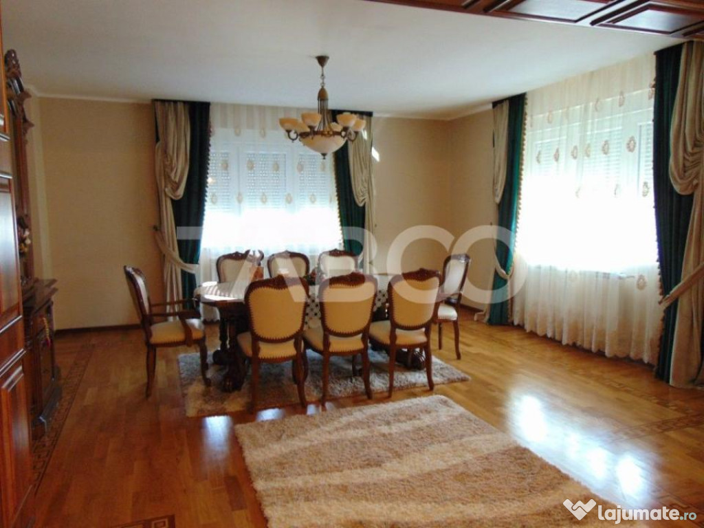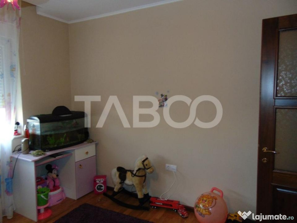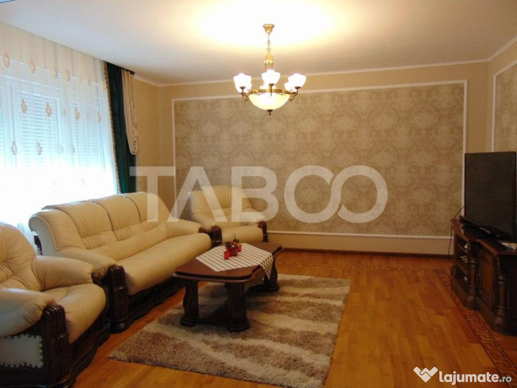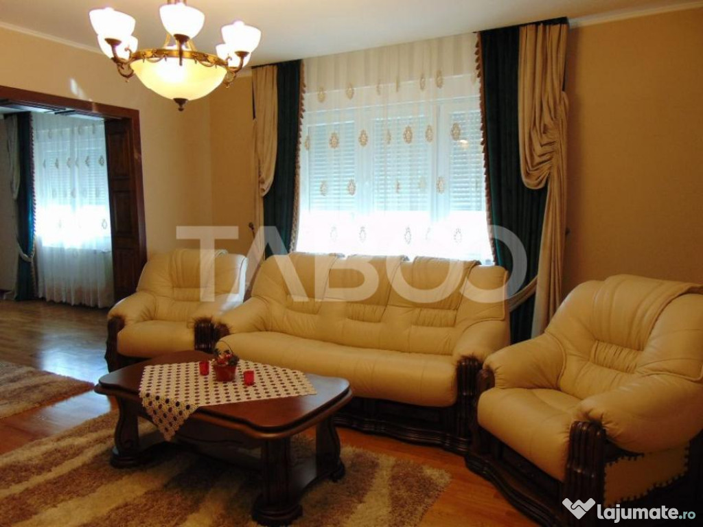 TABOO Imobiliare propune un apartament de inchiriat cu 4 camere, decomandat, situat in localitatea Sibiu, zona Turnisor, aflat la etajul P intr -un imobil tip casa/vila cu regim de inaltime pe Parter + 1 Etaje; anul constructiei 2003, structura caramida. Suprafata utila de 120 mp.