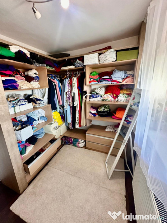 Un spațiu suplimentar versatil, amenajat ca dressing deschis, dar care poate fi transformat cu ușurință în birou sau cameră de zi, în funcție de nevoi.
