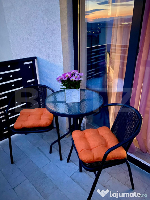 De vanzare apartament semidecomandat si loc de parcare subteran.Apartamentul se afla amplasat intr-un bloc din caramida prevazut cu lift si izolat termic la exterior, dispune de aer conditionat, centrala termica proprie, tamplarie PVC cu geam termopan si este compus din: living open space cu bucataria, 2 dormitoare, baie si balcon. Locul de parcare se poate achizitiona la pretul de 5.000 euro. Pentru mai multe detalii nu ezitati sa ne contactati.