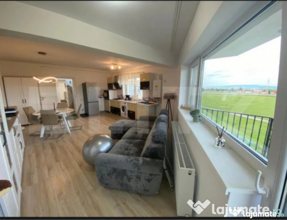 Living spațios open space cu bucătărie complet utilată și mobilată: