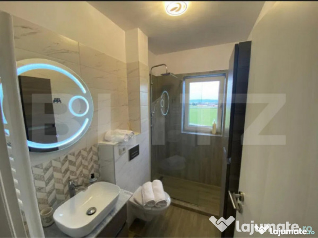 Acest apartament este o oportunitate excelentă de investiție, fiind deja inclus în circuitul hotelier, cu o cotă de 9.8 din 10 pe platformele de închiriere pe termen scurt, bazată pe peste 50 de recenzii pozitive de la turiști (70% români, 30% străini). Se vinde complet mobilat și utilat, gata pentru a fi preluat și exploatat imediat – fie ca investiție cu randament ridicat, fie ca locuință personală în care te poți muta chiar de astăzi.
