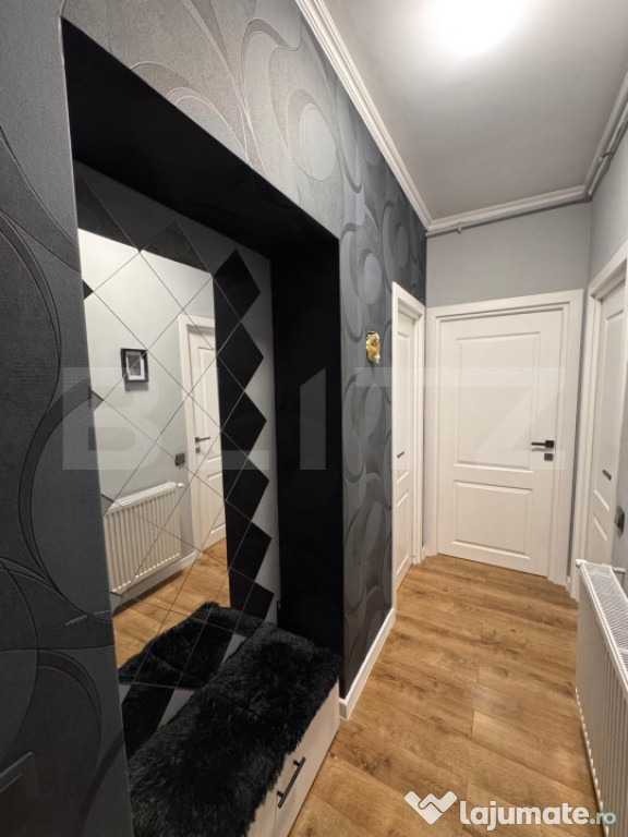 Va oferim spre vânzare un apartament cu suprafața de 55 mp, plus 3,5 mp balcon și 11 mp parcare subterană. Se vinde complet mobilat și utilat, exact ca în poze.Compartimentare: