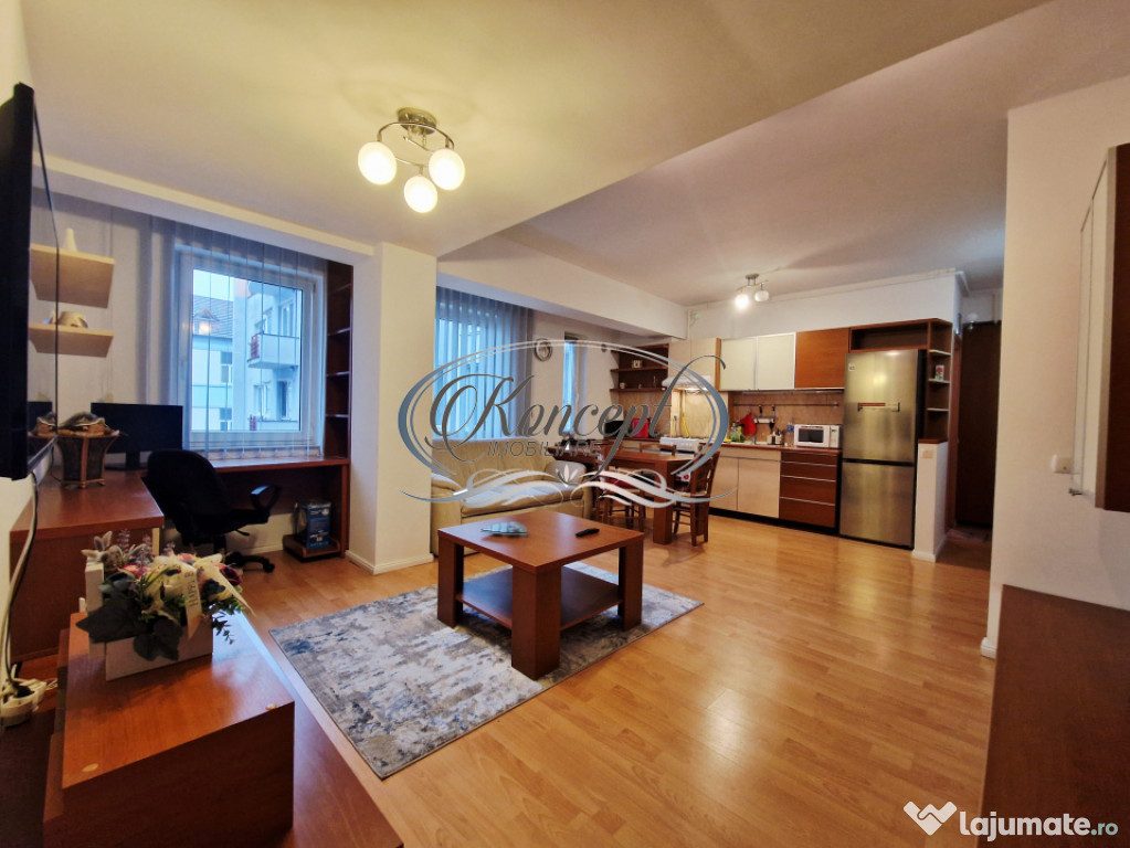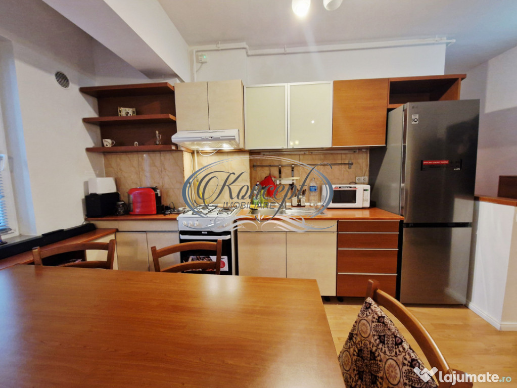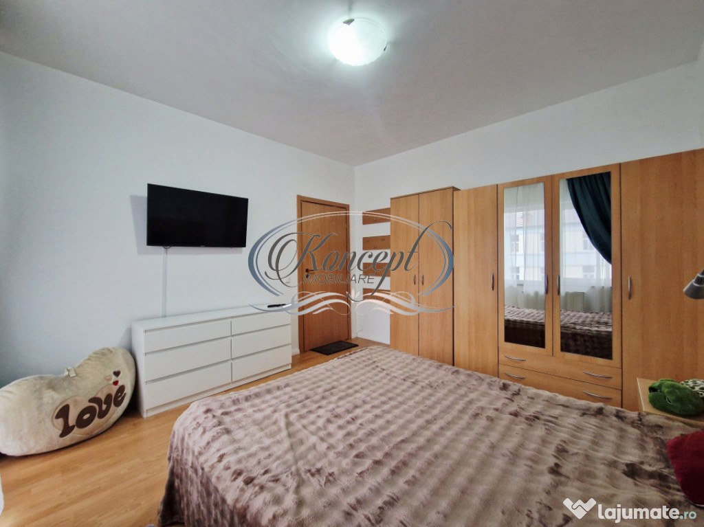 Koncept Imobiliare va ofera spre inchiriere un apartament semidecomandat situat in zona semicentrala, in apropiere de Maestro Business Center si Platinia Lounge Residence, la etajul 2 al unui imobil rezidential modern cu regim de inaltime D+P+3+ER. Pozitionarea cu orientare estica ofera lumina naturala placuta pe tot parcursul diminetii, iar accesul se face intr-un ansamblu cu poarta cu telecomanda si acces securizat, beneficiind totodata de vecinatati linistite si spatii verzi ingrijite. Apartamentul dispune de o suprafata utila de 53 mp, la care se adauga un balcon deschis de 4 mp cu vedere spre curtea interioara. Compartimentarea este gandita functional, incluzand hol, living cu bucatarie open-space si loc de luat masa, dormitor separat si baie cu finisaje moderne. Imobilul este dotat cu centrala de bloc si incalzire in calorifere, oferind confort termic constant. Apartamentul se inchiriaza complet mobilat si utilat, cu electrocasnice de calitate precum aragaz, hota, frigider, masina de spalat haine si doua televizoare smart, ideale pentru un stil de viata actual. Printre avantajele proprietatii se remarca accesul rapid catre transportul in comun, proximitatea fata de magazine, Spitalul Regina Maria, FSPAC, zona Platinia Lounge Residence si diverse centre de birouri. Atmosfera este una calma si sigura, iar posibilitatea de parcare in zona adauga un plus de confort pentru viitorii locatari. Balconul cu vedere spre curtea interioara creeaza un spatiu perfect pentru relaxare, iar compartimentarea echilibrata asigura un ambient potrivit atat pentru locuire, cat si pentru activitati de lucru remote. Aceasta locuinta se potriveste excelent pentru un cuplu, pentru profesionisti care isi doresc acces rapid catre zona de business a orasului, pentru studenti ai facultatilor din apropiere sau pentru companii interesate sa ofere angajatilor un spatiu de locuit confortabil si bine conectat la oras. Pentru informatii suplimentare, programarea unei vizionari sau pentru a afla oferta noastra completa va stam la dispozitie telefonic, prin e-mail sau la sediul agentiei noastre, pe str. Aviator Badescu, nr. 19, Cluj-Napoca.Id intern: P21033