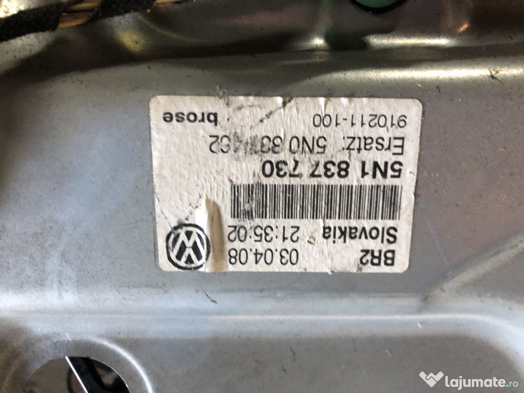 Macara geam dreapta fata Volkswagen Tiguan 2008. Cod(uri): 5N1837730. Piesele comercializate sunt originale, provenite din dezmembrari. Dispunem de o gama larga de piese multimarca. Piesele sunt verificate inainte de a fi puse spre vanzare. In caz de neconformitate piesa se poate returna. Va rugam sa verificati disponibilitatea pieselor telefonic. Trimitem in tara prin curier.Marcă: Volkswagen