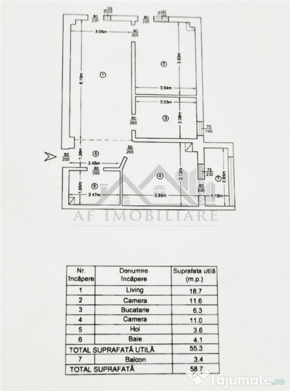 Apartament de vanzare cu 3 camere, situat in zona Pacurari ndash; Alpha Bank, intr-un bloc modern cu lift, la etajul 3 din 4.Locuinta are o suprafata totala de 58,7 mp, din care 3,4 mp balcon, fiind compartimentata eficient pentru confort si functionalitate.