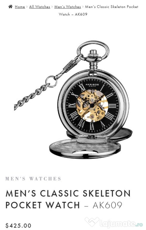 Anuntul Ceas de buzunar clasic schelet | Akribos XXIV AK609 - Eleganță care ba este adaugat de pe LaJumate.ro.