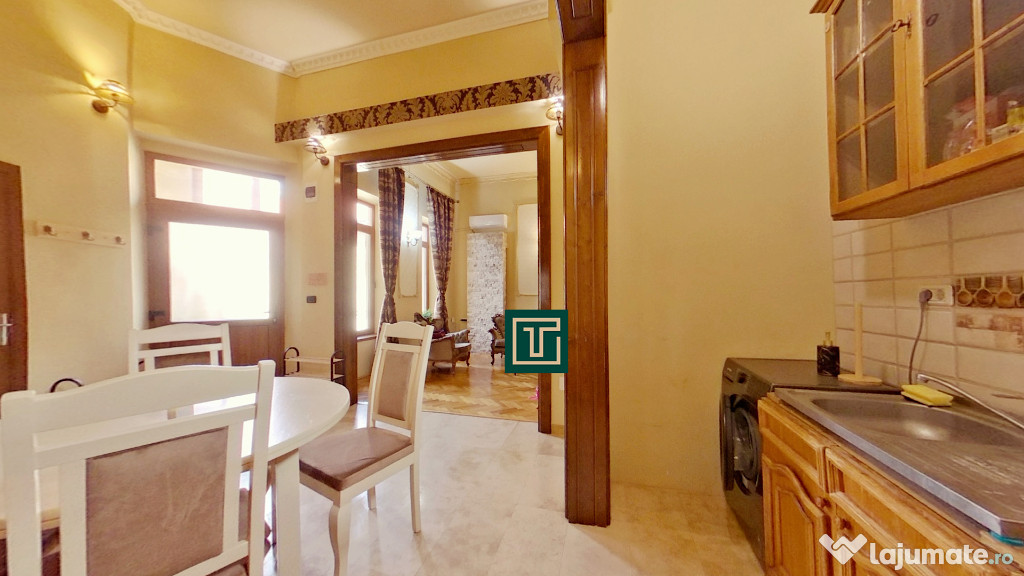 Descoperiți farmecul unui apartament elegant, situat în inima Aradului, într-o clădire istorică construită în anul 1892, ce păstrează rafinamentul arhitecturii clasice și oferă tot confortul modern. Cu o suprafață utilă de 85 mp (98 mp desfășurată), apartamentul este amplasat la etajul 2 și se remarcă prin spațiile generoase, luminozitate și atmosfera caldă dată de șemineul funcțional pe lemne.Proprietatea este semidecomandată și include o sufragerie spațioasă, un dormitor primitor, bucătărie complet utilată, baie, și balcon retras, ideal pentru momente de relaxare. Mobilierul clasic și detaliile arhitecturale originale creează un ambient plin de caracter, potrivit pentru cei care apreciază eleganța și confortul. Pe etaj există doar un singur vecin, oferind intimitate și liniște.