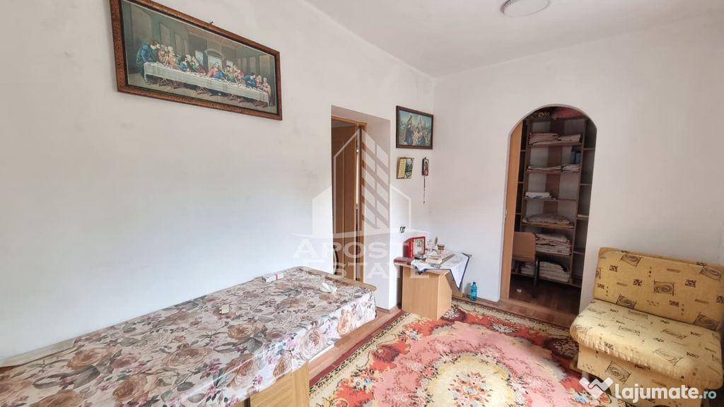 Apostu Estate va ofera in exclusivitate spre vanzare casa individuala decomandata pe regim de inaltime P cu teren generos de 1800 mp, front stradal mare cu 2 porti de acces intr-o zona linistita din satul Covaci comuna Sanandrei, la 10 minute de TimisoaraCasa are 80mpu si este compartimentata astfel: