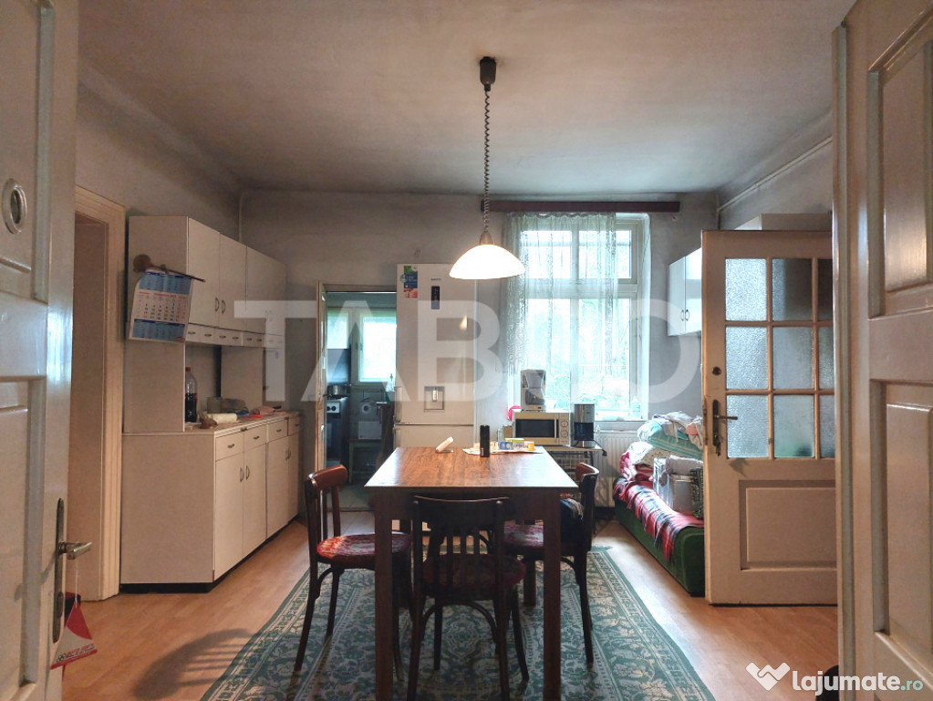 Exclusivitate, comision 0%, apartament 2 camere de vanzare, decomandat, 82 mp, strada LIVEZII, Cisnadie.Apartament situat la parterul unei case interesante, cu terasa in spate si zona verde. Casa este frumoasa, cu o arhitectura ce aminteste de casele nobile cu istorie. Apartamentul este spatioas si se poate recompartimenta astfel incat sa rezulte un apartament cu 2 camere plus o garsoniera separata de apartament ( apartamentul are o a treia incapere pe acelasi culoar cu apartamentul).