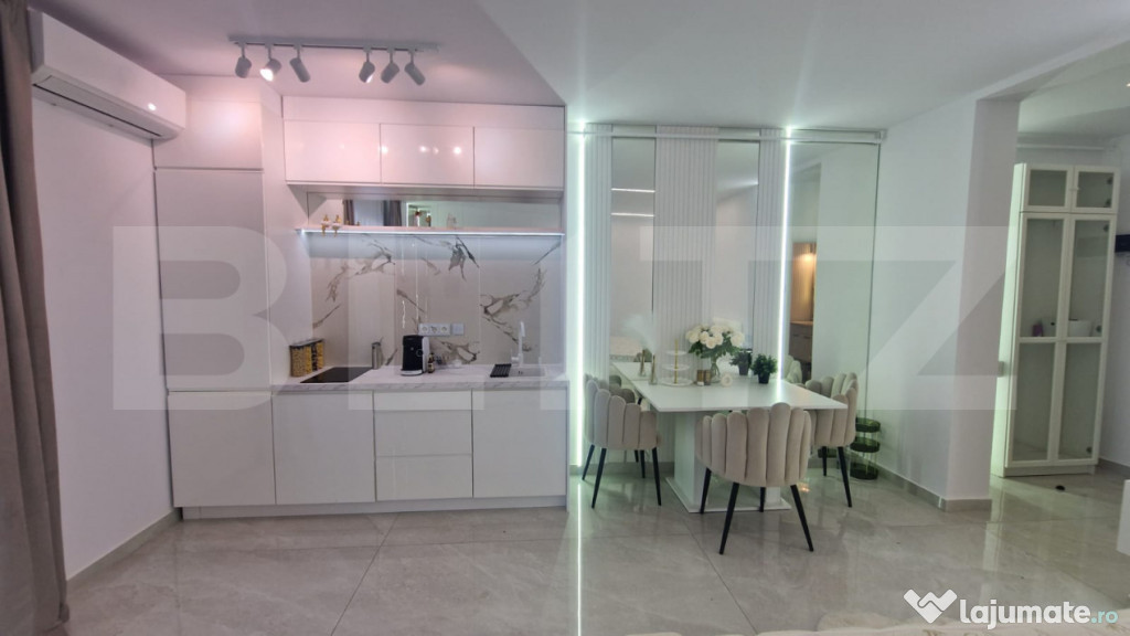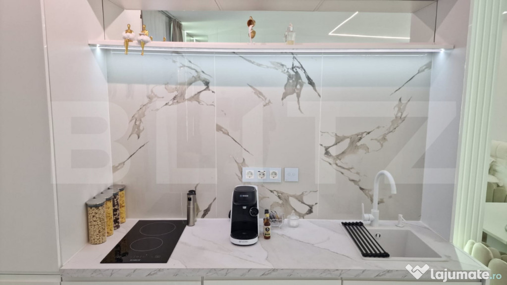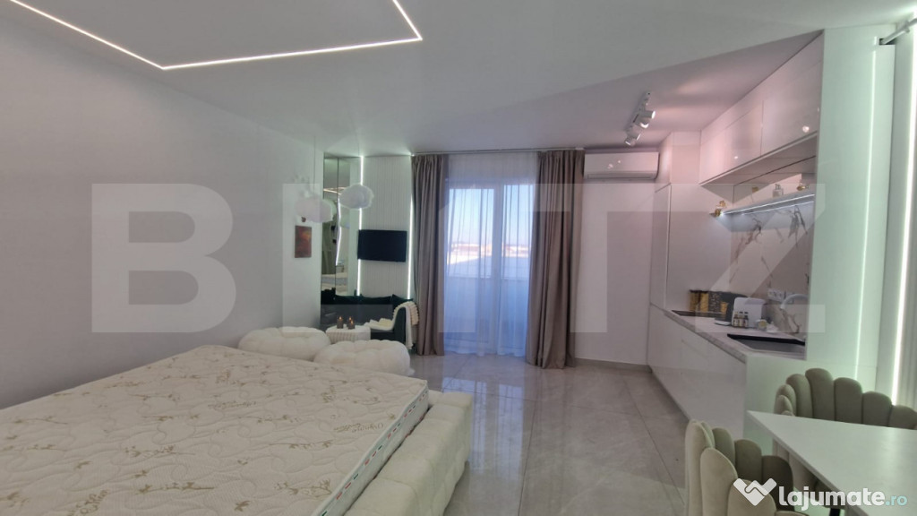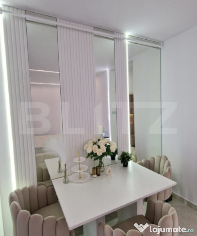 Blitz te invită să descoperi un studio elegant, amenajat cu atenție la detalii, ideal pentru regim hotelier sau pentru cei care își doresc un spațiu de locuit modern, luminos și perfect funcțional.Designul interior minimalist-luxos, în nuanțe deschise, creează o atmosferă relaxantă și primitoare, iar iluminarea LED integrată oferă un plus de rafinament.