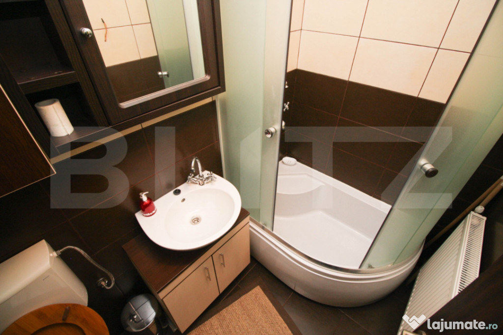 Se vinde mobilată și utilată complet (TV, frigider, mașină de spălat, electrocasnice, covoare, etc.) – totul nou!