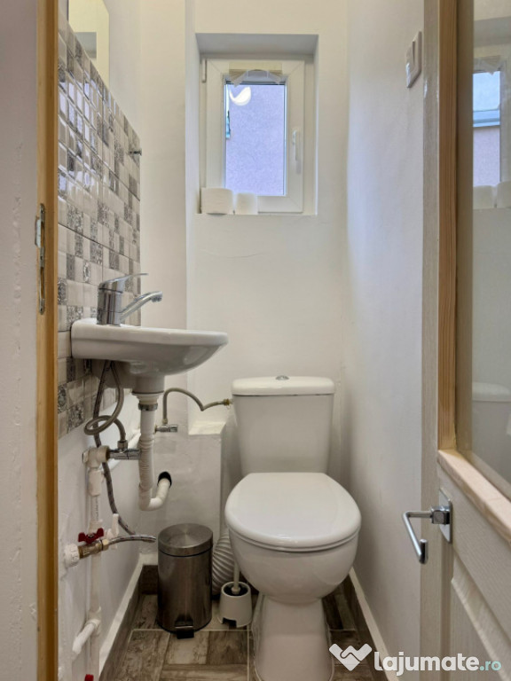 Apartament de 2 camere, situat la etajul 3/3, prima închiriere. Locuință decomandată, cu centrală proprie, luminator în tavan (skylight) și acces printr-o scară de serviciu separată, folosită exclusiv. Persoanele de la parter și etajul 1 au intrări complet independente, fără acces pe scara dvs., ceea ce oferă intimitate și liniște.Proprietatea beneficiază de o grădină cu acces aproape privat, întrucât celelalte apartamente (de la parter și etajul 1) au intrări distincte. De asemenea, are internet instalat și numeroase locuri de parcare disponibile în zonă. Bucătăria este complet echipată, dotată cu plită și cuptor noi.