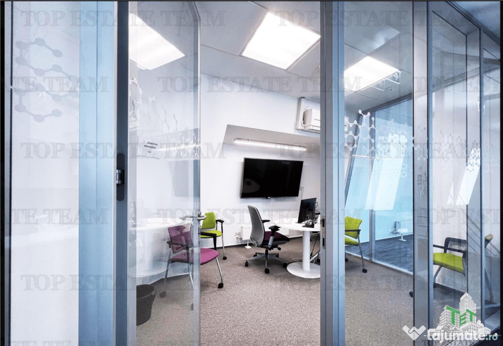 Spatiul este complet amenajat, cu finisaje moderne, design flexibil si lumina naturala abundenta, ideal pentru companii care isi doresc o imagine profesionala si un mediu de lucru confortabil. Cladirea beneficiaza de o fatada istorica reconditionata, acces controlat, receptie si lift modern.