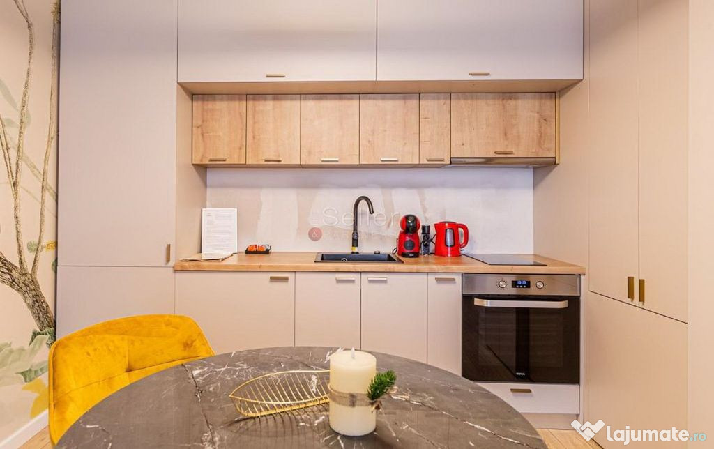 - Bucataria, de tip open space fiind mobilata si dotata;