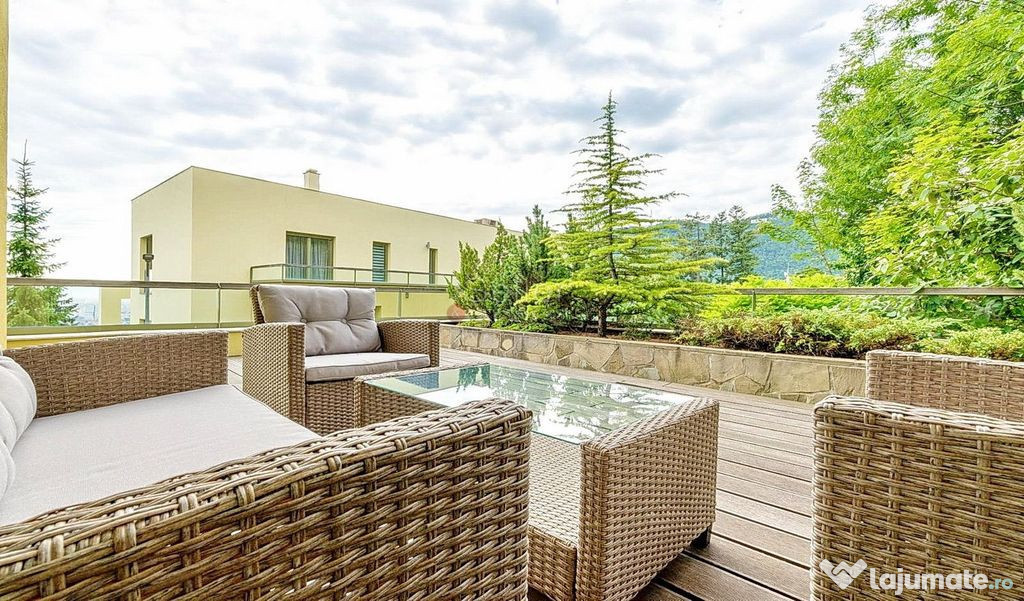 - Living-ul, care are o suprafata generoasa, detine suprafata vitrata mare, are inclusa bucataria si zona de luat masa, beneficiaza de priveliste aparte catre oras si are deschidere catre o terasa superba.