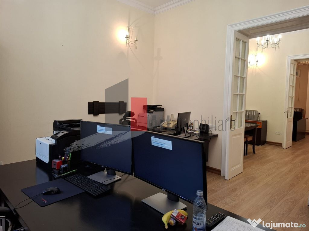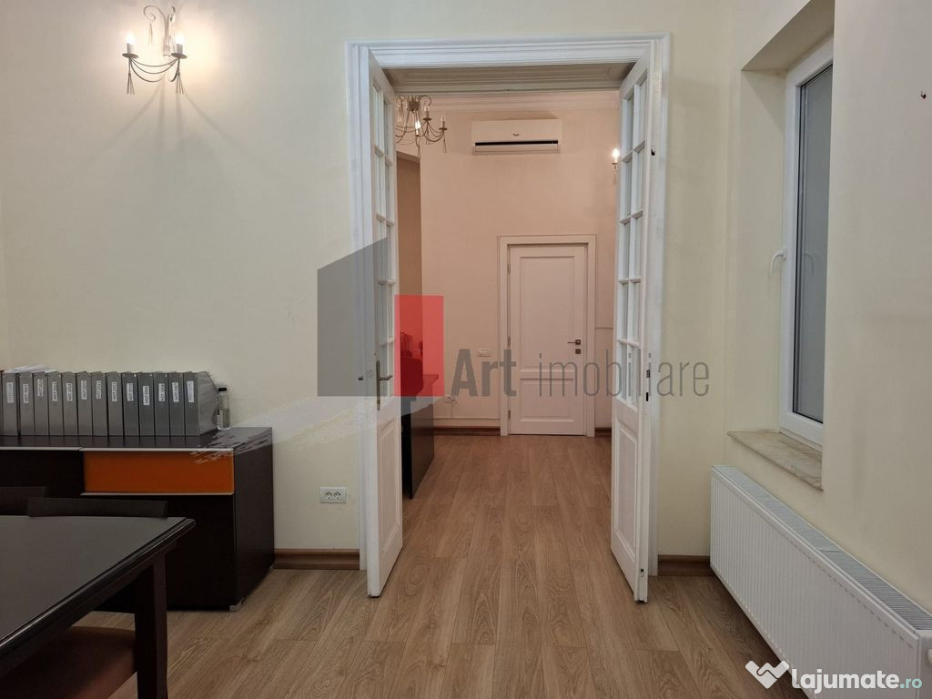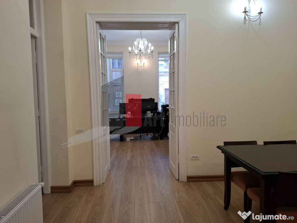 Pentru cei care isi doresc o locatie in zona centrala/ultracentrala, pentru cei care isi doresc o locatie foarte accesibila, pentru cei care isi doresc un apartament renovat, pentru cei care isi doresc o locatie care poate fi folosita pentru activitate de birouri, pentru cei care isi doresc un apartament la parter, conform anumitor nevoi sau pur si simplu pentru iubitori ai zonei avem noi ceea ce va trebuie.Apartamentul "DIGEMM" se afla in zona Calea Victoriei, aproape de intersectia cu Splaiul Independentei, la hochparterul unui bloc cu regim mic de inaltime, cu o suprafata utila de 80 mp, compartimentat in 3-4 camere, bucatarie mare mobilata si utilata, baie mare prevazuta cu geam de aerisire. Suplimentar acesta are o debara care poate fi transformata in al doilea grup sanitar, iar la subsol 2 boxe si o camera de serviciu , ce totalizeaza 36 mp. Apartamentul dispune de centrala proprie, este liber si se preteaza pentru activitati de birouri sau cu profil comercial.