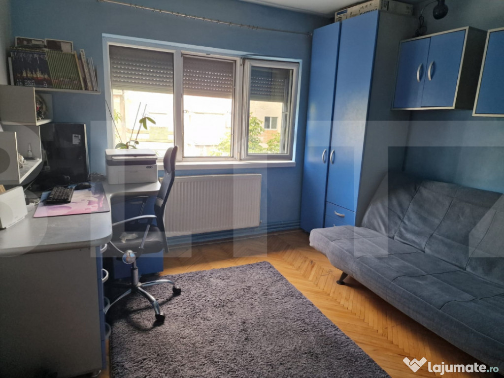 Vând apartament cu 3 camere, complet mobilat și utilat, situat într-o zonă liniștită, cu acces rapid la mijloacele de transport în comun, magazine, școli și alte puncte de interes.Locuința este confortabilă și bine întreținută, ideală atât pentru locuit, cât și pentru investiție (închiriere).