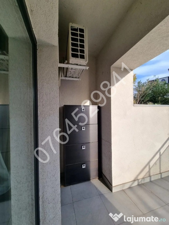 Balcon deschis tip terasa (foarte generos),centrala termica (pe gaz) de apartament,aer conditionat,televizor led,canapea extensibila tip coltar+dressing generos in living,pat matrimonial in dormitor,spatii depozitare,plita pe gaz+cuptor electric+masina de spalat vase incorporate,combina frigorifica,masina de spalat rufe.