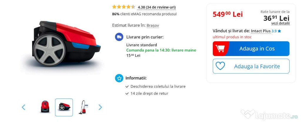 Anuntul Aspirator philips NOU. este adaugat de pe LaJumate.ro.