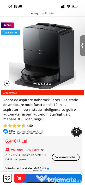 Nou, sigilat. Ultima generație de aspiratoare robot care au si mop.Anuntul Aspirator Roborock Saros 10R este adaugat de pe LaJumate.ro.