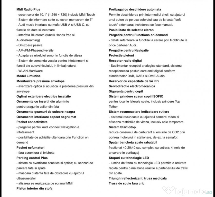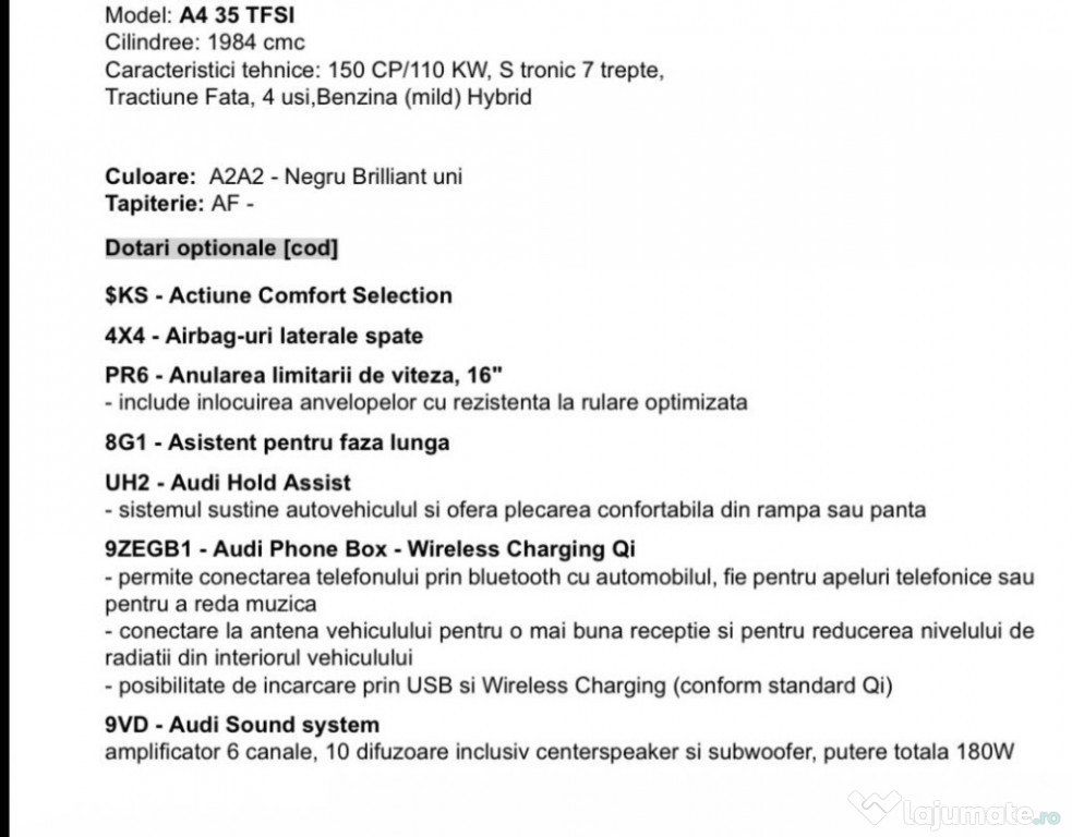 Ideală pentru cine caută un Audi A4 bine echipat, ce se diferențiază de celelalte mașini ce au doar dotările de serie, cu numeroase pachete de confort, design și asistență, cu posibilitatea de preluare leasing sau achiziție cu TVA deductibil.
