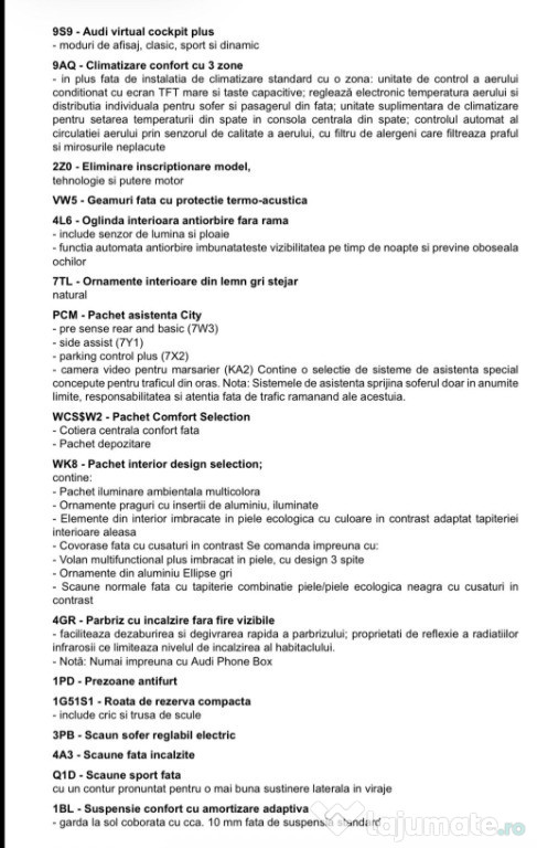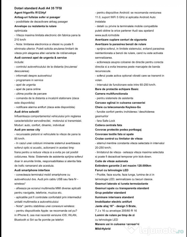 Dotări standard/de serie relevante (lista completă de dotări în poze):