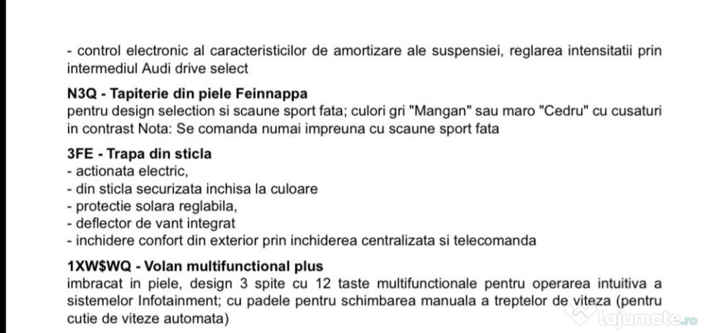 Suspensie confort cu amortizare adaptivă, controlată electronic prin Audi drive select, gardă la sol coborâtă ~10 mm