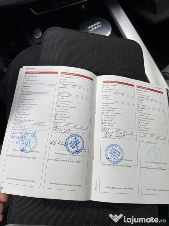 Autoturism cu întreținere in rețeaua VAG. Distribuție schimbată la 207.367 Ulei, filtre schimbate la ...