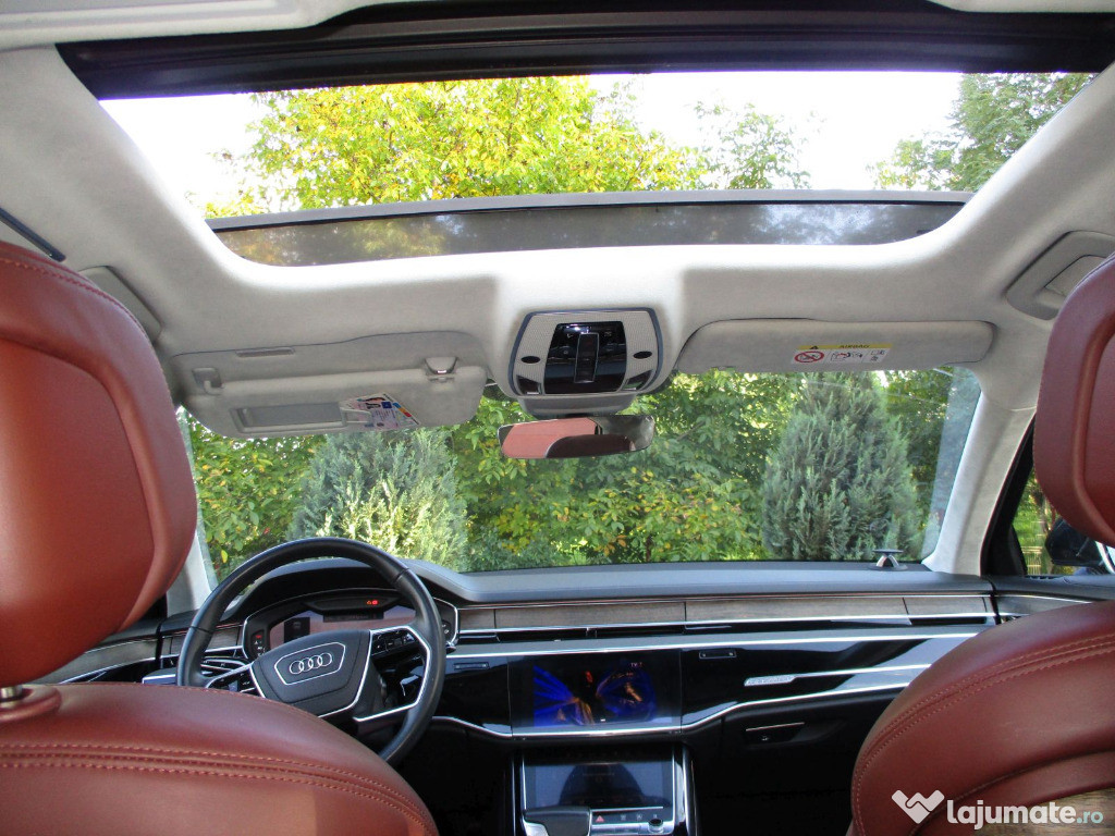Dotari: Dublu climatronic, Tractiune integrala: 4x4, Soft close, Computer de bord, Pilot automat ( Cruise control), Televizoare, Navigatie mare, Plafon panoramic din sticla, Tapiterie piele, 4 Geamuri actionate electric, Oglinzi actionate electric, incalzite si heliomate, Jante aliaj aluminiu originale Audi, Head Up Display, Bang and Olufsen Sound System, Webasto cu Telecomanda, Keyless Go / Keyless Entry, Virtual Cockpit, Scaune Full Electric + Memorie + Masaj, Suspensie pneumatica, Avertizare unghi mort, Distronic plus, Camere 360, Perdelute spate, Line assist, Side assist, Plafon alcantara, Pachet lumini ambientale, Inchidere centralizata cu telecomanda, Scaune individuale spate, LED fata – spate, Ventilatie, incalzire si masaj scaune fata – spate, ABS, ESP, DTC, 18 Airbaguri, Bluetooth, Senzori ploaie, Senzori lumina, Senzori parcare fata & spate, Sistem audio performat original Audi, Comenzi volan, Servo frana, Servo directie, Volan reglabil imbracat in piele, Proiectoare ceata in bara, Cotiere, Spalatoare faruri, Scaune fata reglabile electric lombar si in inaltime, Crom paket, etc.