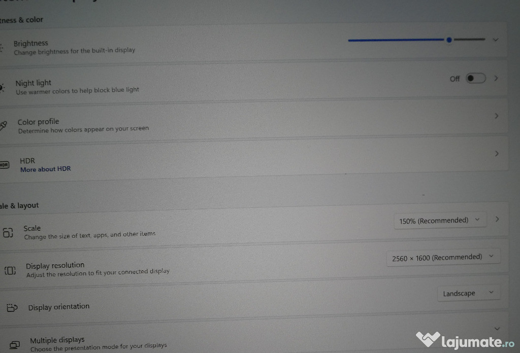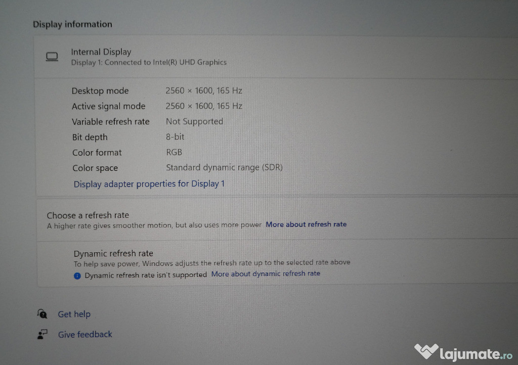 Display 16 inch rezolutie 2560*1600 la 165Mhz, calibrat din fabrica